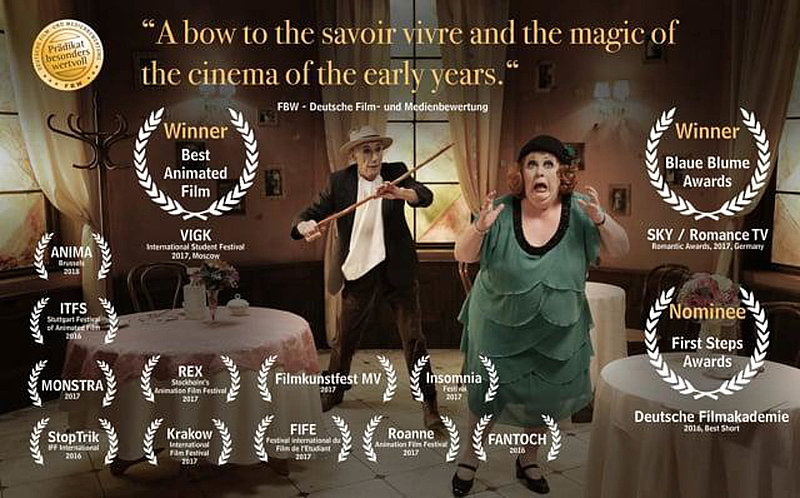 Bei CAFÉ D’AMOUR handelt es sich um den Diplomfilm des Filmstudenten Benedikt Toniolo an der Filmuniversität Babelsberg KONRAD WOLF. Der Untertitel „Eine pixilierte Slapstick-Komödie“ verrät schon viel über den Stil und das Genre dieses bezaubernden Films, bei dem man in jeder Sekunde merkt, wieviel Mühe, Arbeit und Liebe zum Detail dahinter steckt. Und doch fühlt sich der achtminütige Film ganz leichtfüßig an, wie er seine Geschichte zweier einsamer Menschen erzählt, die vom Schicksal zusammengeführt werden.