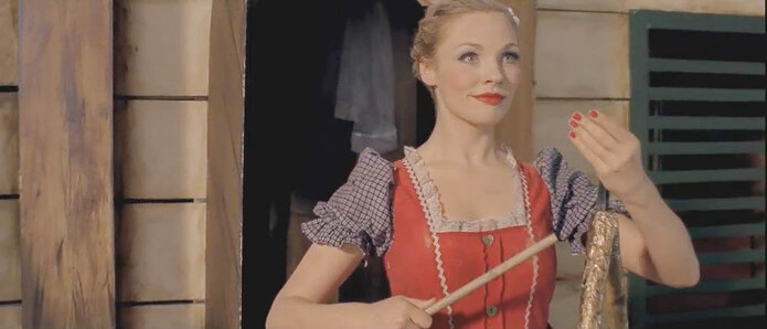Das Dach öffnet sich und eine riesige Hand stellt eine neue, eine fremde Figur ins Gehäuse. Von beiden wird erwartet, dass sie das alte, glückliche Spiel spielen. Doch sie hat ihre folgenschwere Entscheidung längst getroffen…