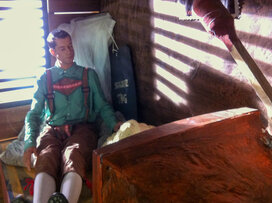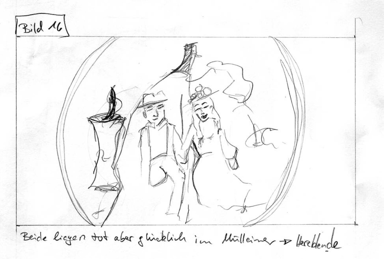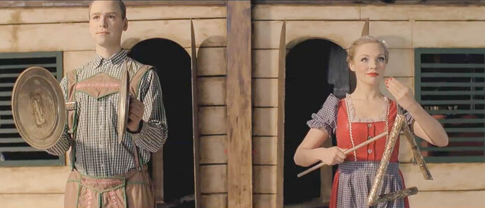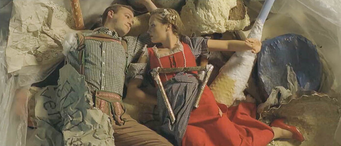 Doch sie sind alt geworden hier drin. Bei einem unbeschwerten Tanz passiert es. Sein Arm reißt ab. Schon schlägt eine neue volle Stunde. Panik. Sie schaffen es nicht, ihn zu reparieren. Die beiden müssen nach draußen. Sie wissen was das bedeutet. Man wird ihn ersetzen, sie allein zurückkommen lassen.